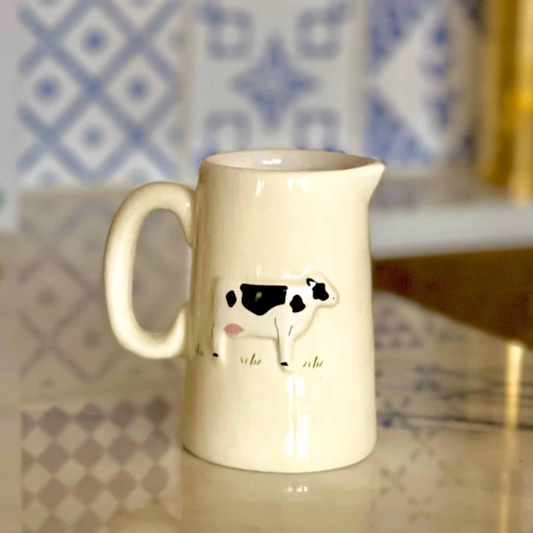 Liten kanna för mjölk eller grädde ”Ko” 85 kr I lager Lägg i korgen Dela Lagersaldo: 2 Produktbeskrivning Servera mjölken eller grädden i en liten klassisk kanna dekorerad med en ljuvlig ko i relief. Stengods. Höjd 8 cm.