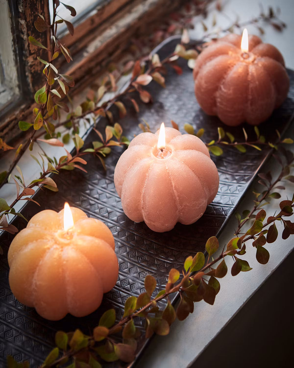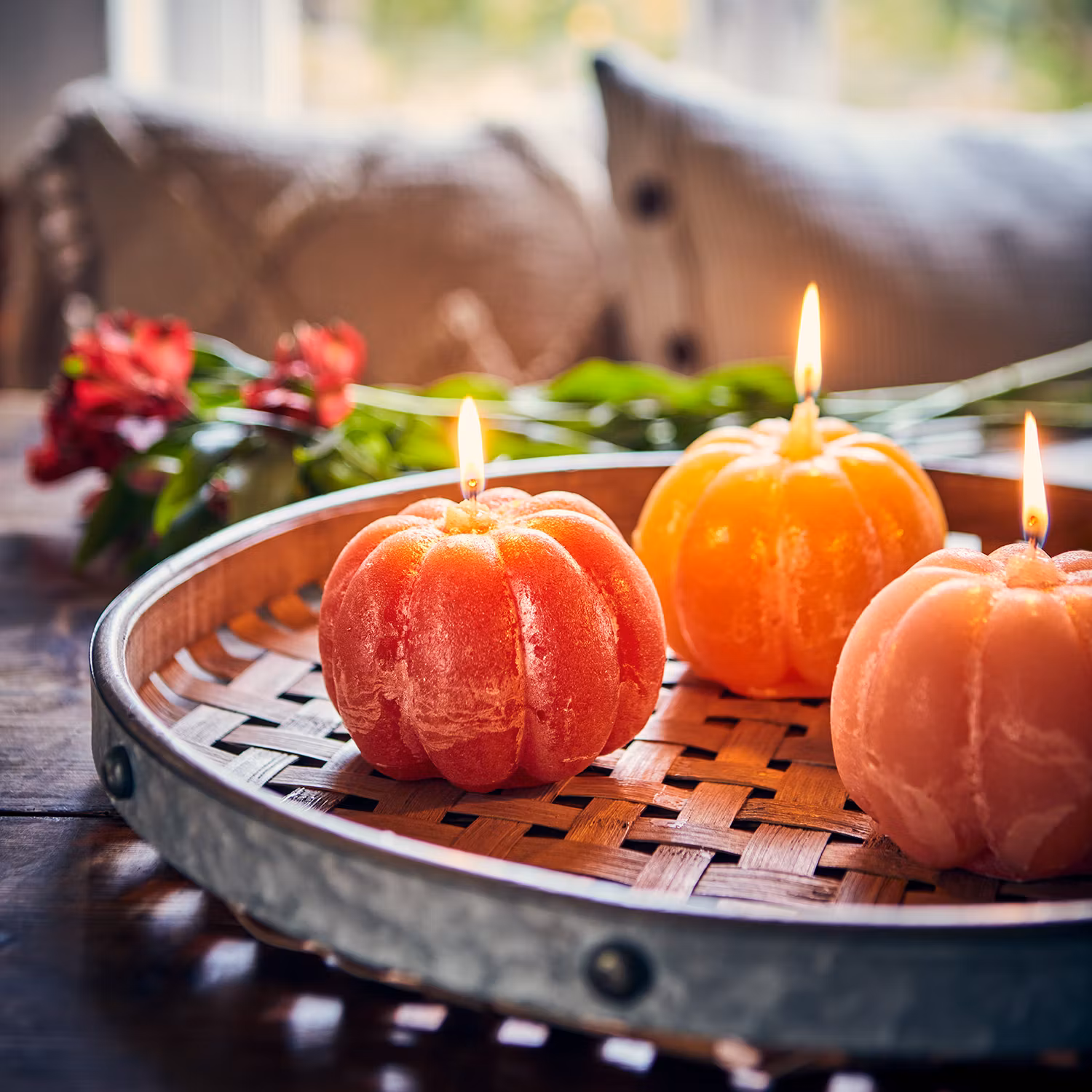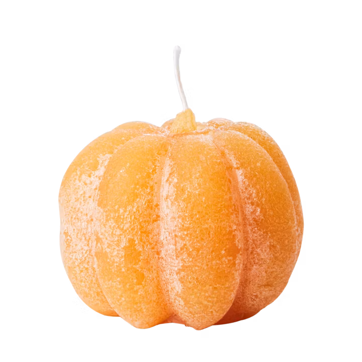 Läckert ljus i form av en pumpa, handgjort i Sverige och genomfärgat. Placera alltid ljus på fat eller i hållare av icke brännbart material för att förhindra brand eller orsaka skador på underlaget. Höjd 10 cm, diameter 10 cm. 100% paraffin. Brinntid ca 50 timmar.